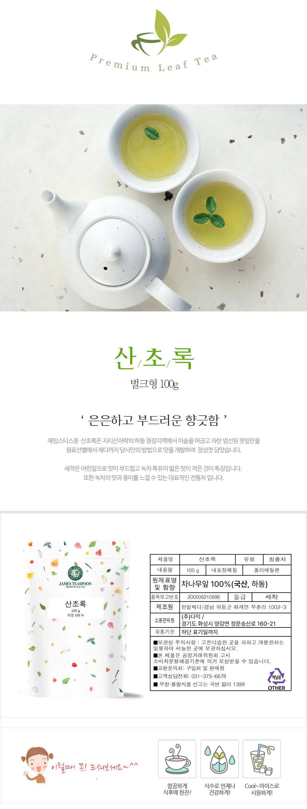 [사업자용] 녹차세작 (산초록) 100g